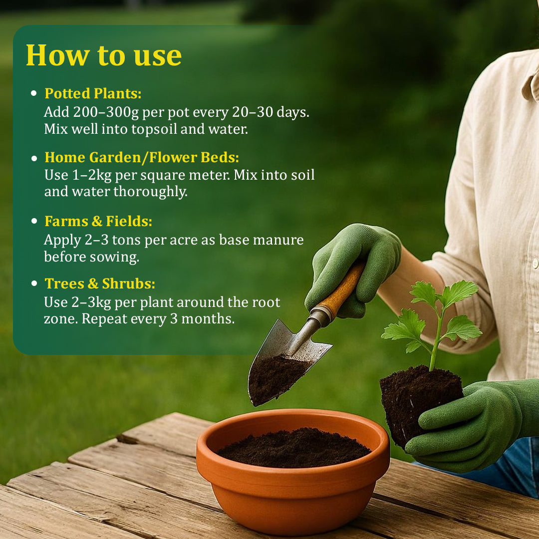 काला सोना वर्मीकम्पोस्ट 50 किलोग्राम बैग मध्यम से बड़े पैमाने पर खेती या व्यावसायिक उपयोग के लिए सबसे उपयुक्त हैं।