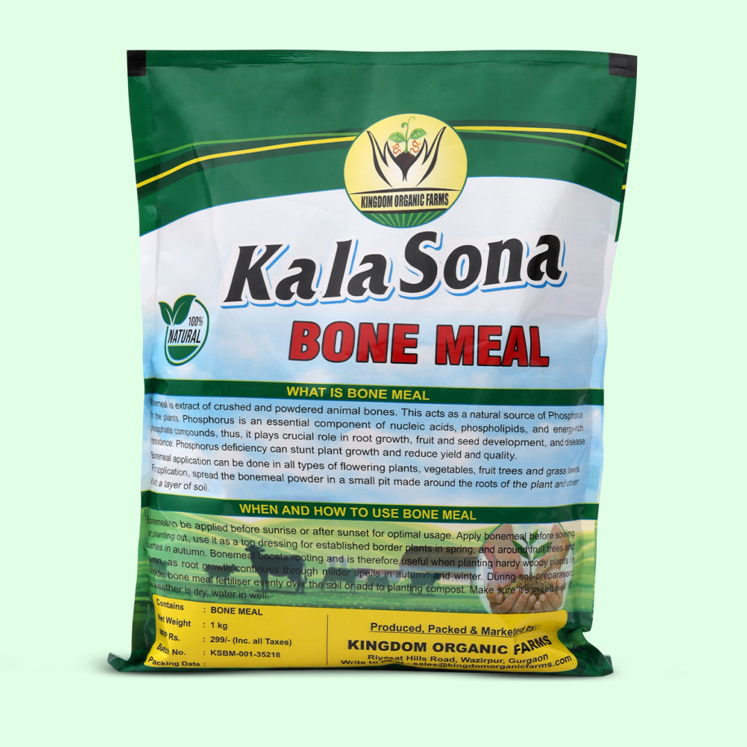 కాలా సోనా బోన్మీల్ అనేది 100% సేంద్రీయ, నెమ్మదిగా విడుదల చేసే భాస్వరం అధికంగా ఉండే ఎరువులు, ఇది సహజ జంతువుల ఎముకల నుండి తయారవుతుంది. ఇది మీ మొక్కలను సహజ పద్ధతిలో పోషించడానికి కింగ్డమ్ ఆర్గానిక్ ఫామ్ ద్వారా ప్రత్యేకంగా రూపొందించబడింది - రసాయనాలు మరియు సింథటిక్ సంకలనాలు లేకుండా.